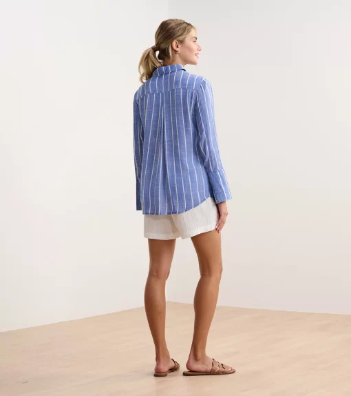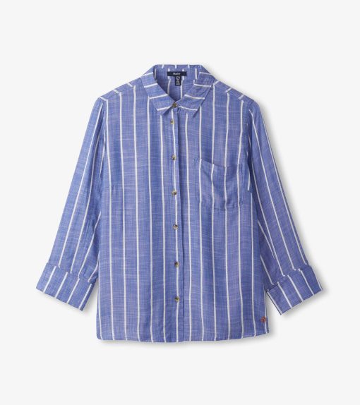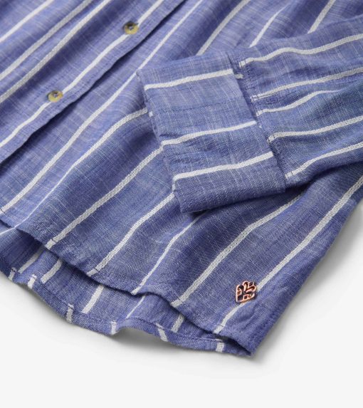 The Cindy Blouse in Basket Weave Stripes is a refined yet versatile addition to your wardrobe. Made from lightweight denim-look rayon, it features a subtle striped pattern inspired by basket weave textures, a braided rope detail, and an exaggerated cuff. The relaxed fit and breathable fabric make it ideal for layering or wearing solo. Pair it with trousers or skirts for a polished look.