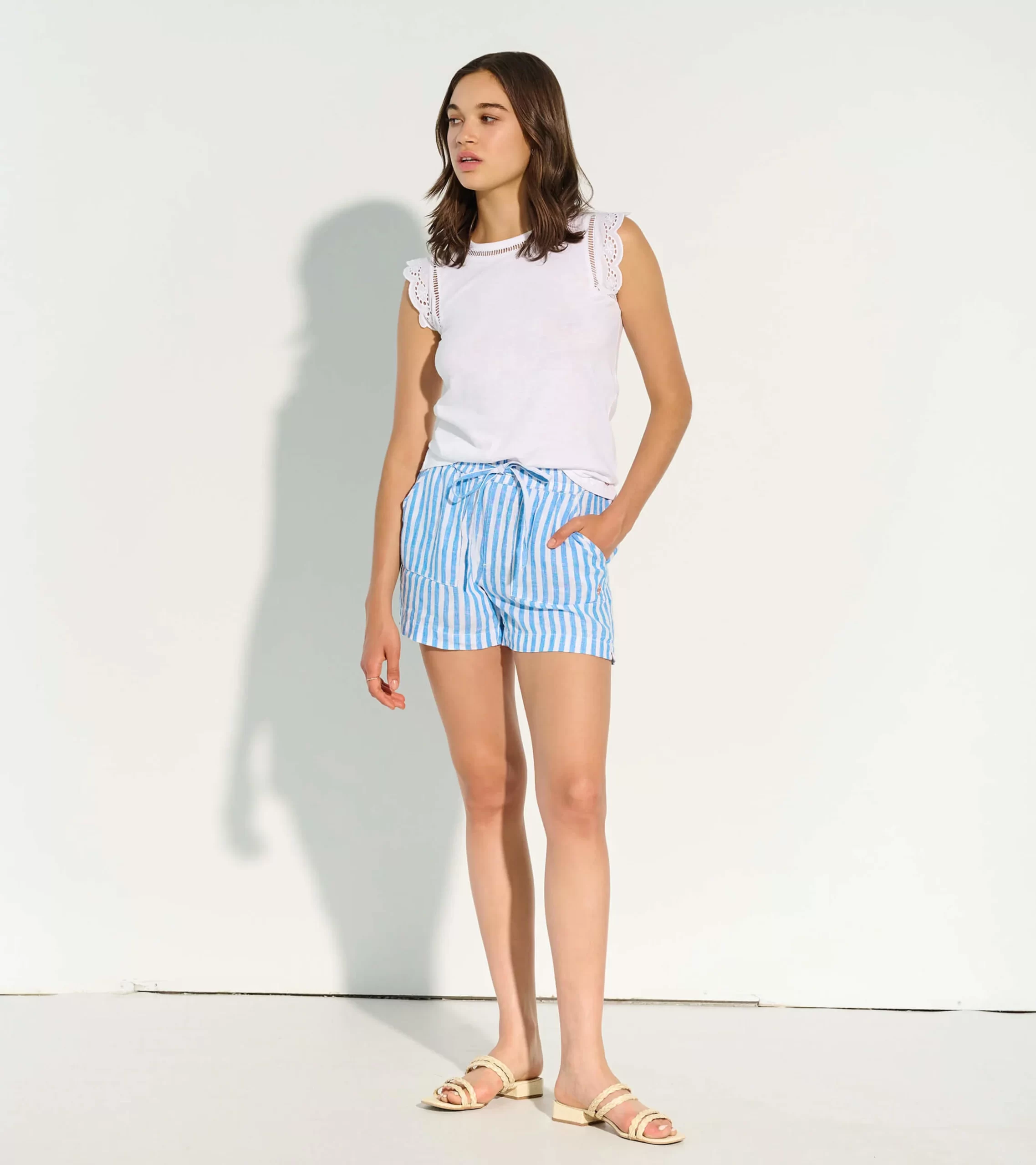 Get legs for days in these relaxed fitting pull-on shorts. Whether you’re at home or out in the city, these flattering linen shorts are the ultimate in comfy-chic styling. Featuring a smocked waistband and functional draw cord, we think it’s the front and back pockets you’ll love most.