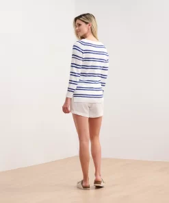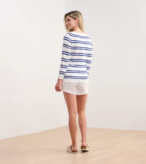 The Mariner Sweater in Navy and White Stripes brings timeless elegance to your wardrobe. Crafted from 100% cotton, it offers both comfort and durability. The nautical-inspired design is perfect for cool evenings or breezy days. Dress it up with slacks or keep it casual with denim for a polished look.