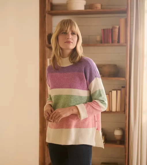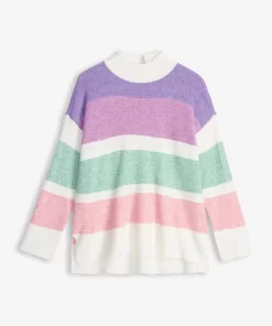 The Mock Neck Tunic in sunrise color block is a modern and chic piece made from a blend of acrylic, nylon, and spandex. The color block design adds visual interest, while the mock neck and tunic length provide warmth and coverage. Perfect for adding a pop of color to your fall and winter wardrobe.