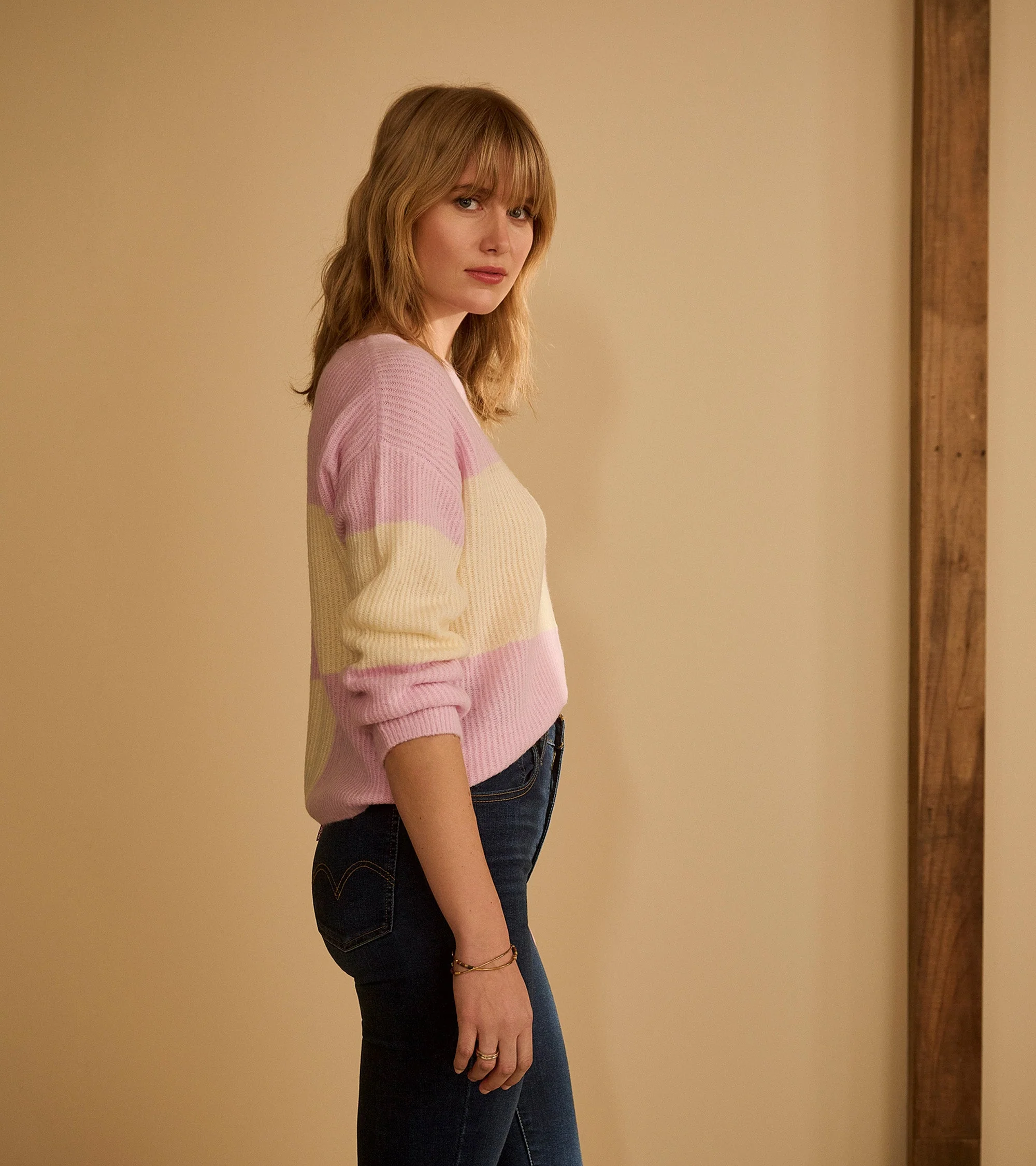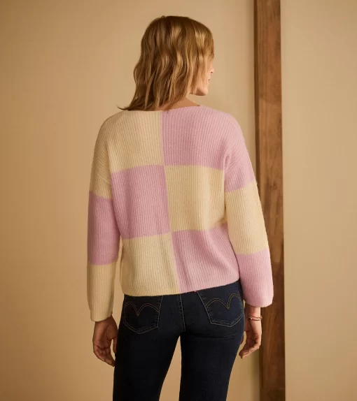 In pink blocks, the Monroe Sweater combines playful color with a contemporary design. Crafted from acrylic, nylon, and spandex, it provides both comfort and style. The block pattern in soft pink tones makes it a standout piece for adding a pop of color to your wardrobe.