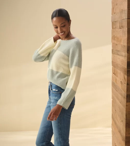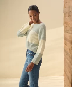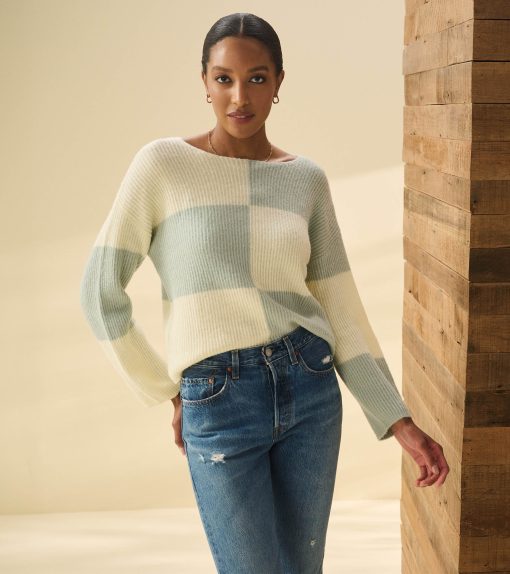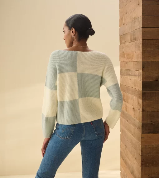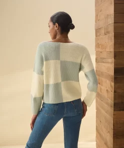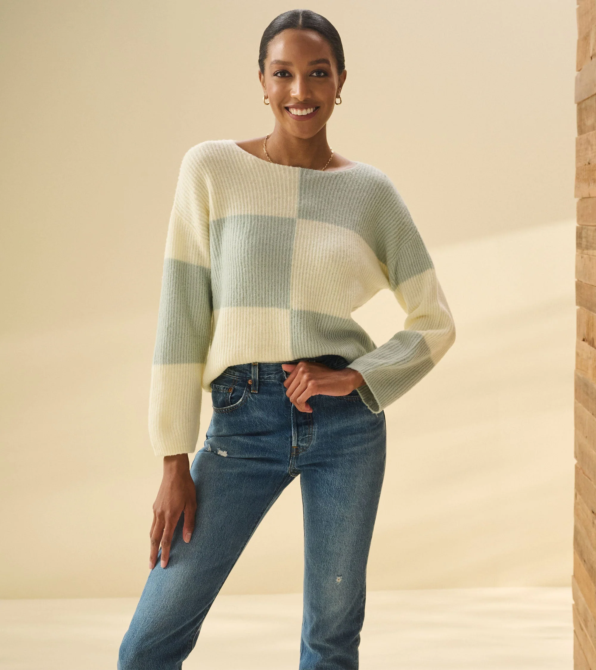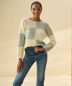 The Monroe Sweater in sage green blocks is a modern and chic piece, made from acrylic, nylon, and spandex. The block design in soothing sage green tones adds a fresh and stylish look, while the soft fabric offers comfort and ease. Perfect for pairing with jeans or skirts for a polished ensemble.