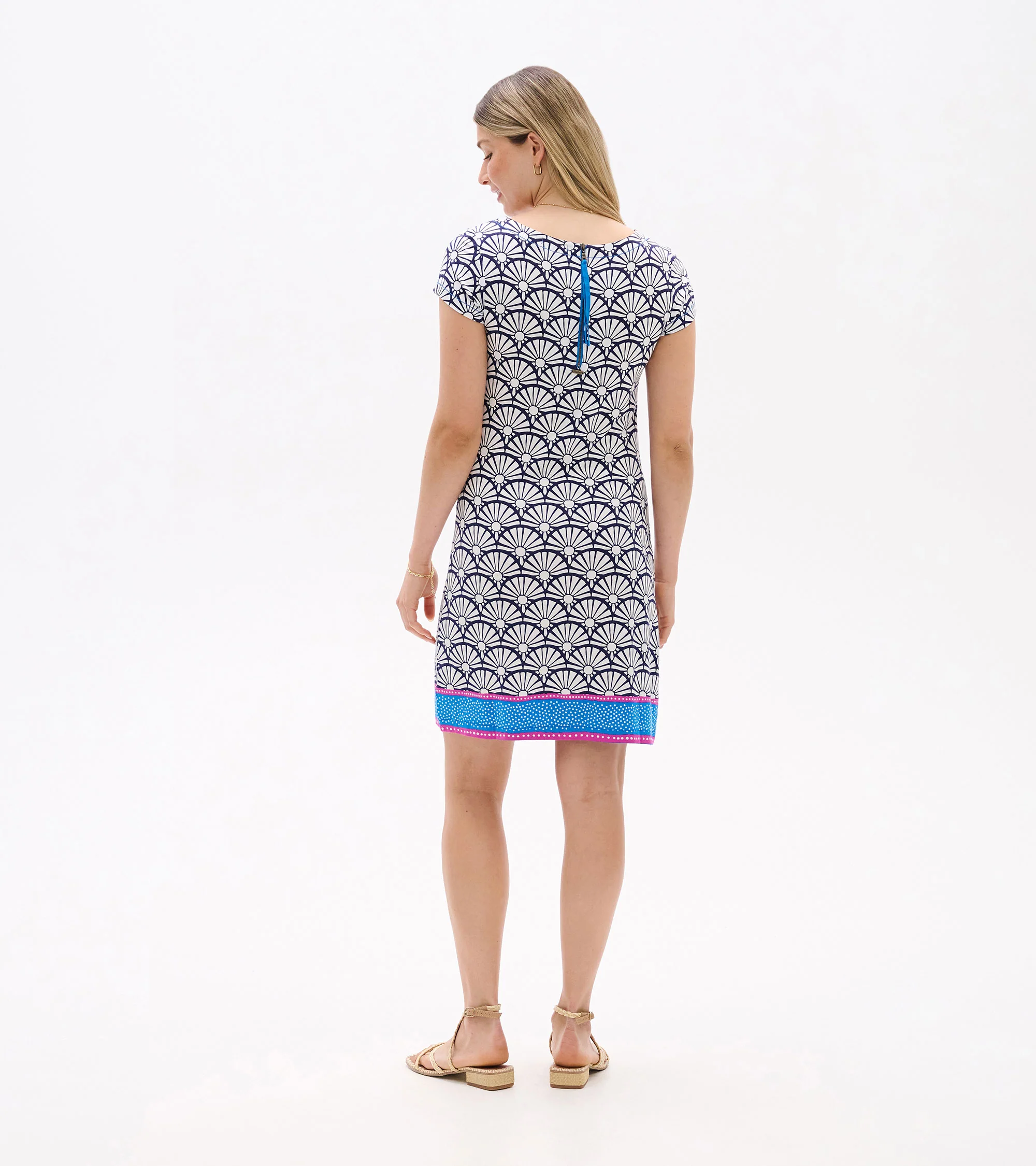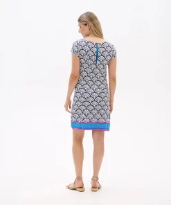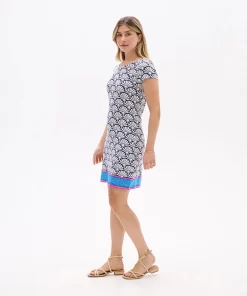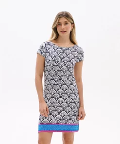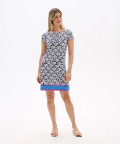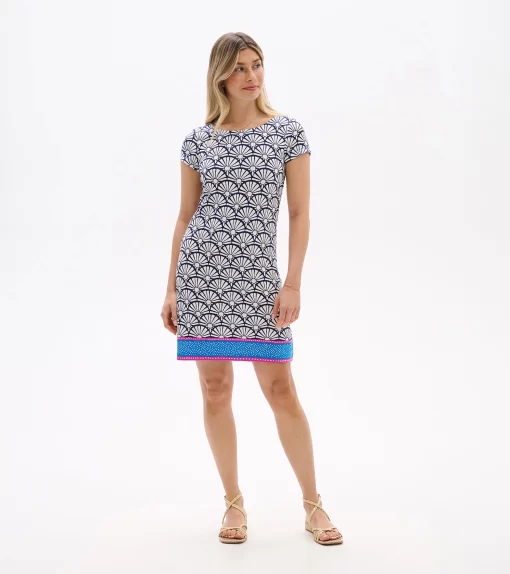The understated Nellie dress has a superpower to flatter. How? Its strategically placed print creates the illusion of a tiny waist and its clean lines smooths your silhouette. The viscose-blend feels super-soft and has a little bit of stretch for comfort that gives this tee dress stand-out ability.