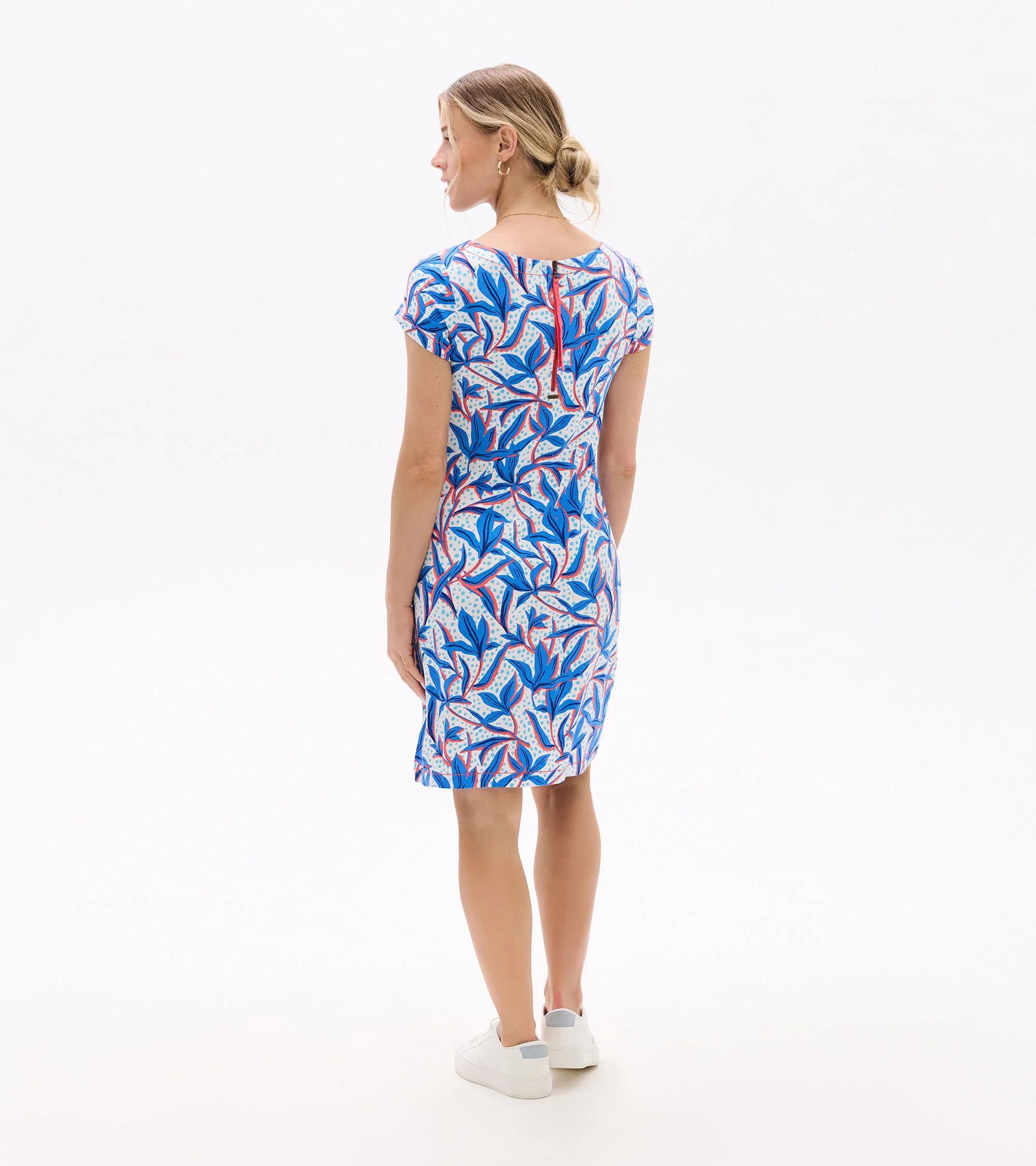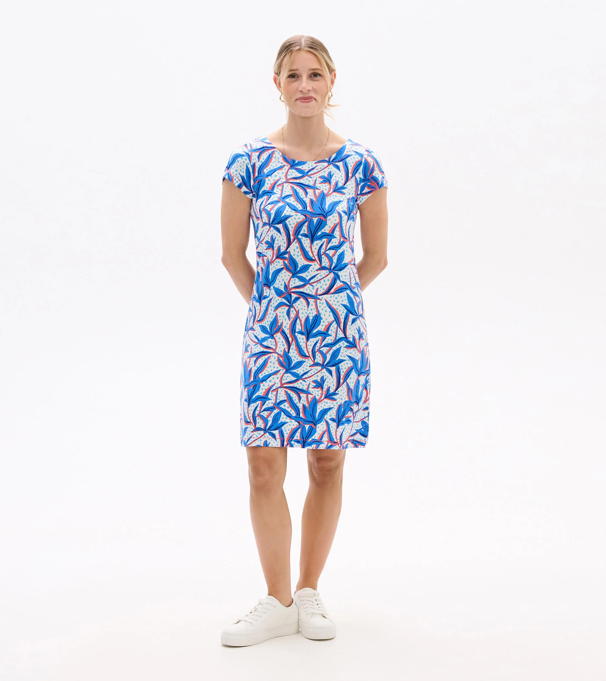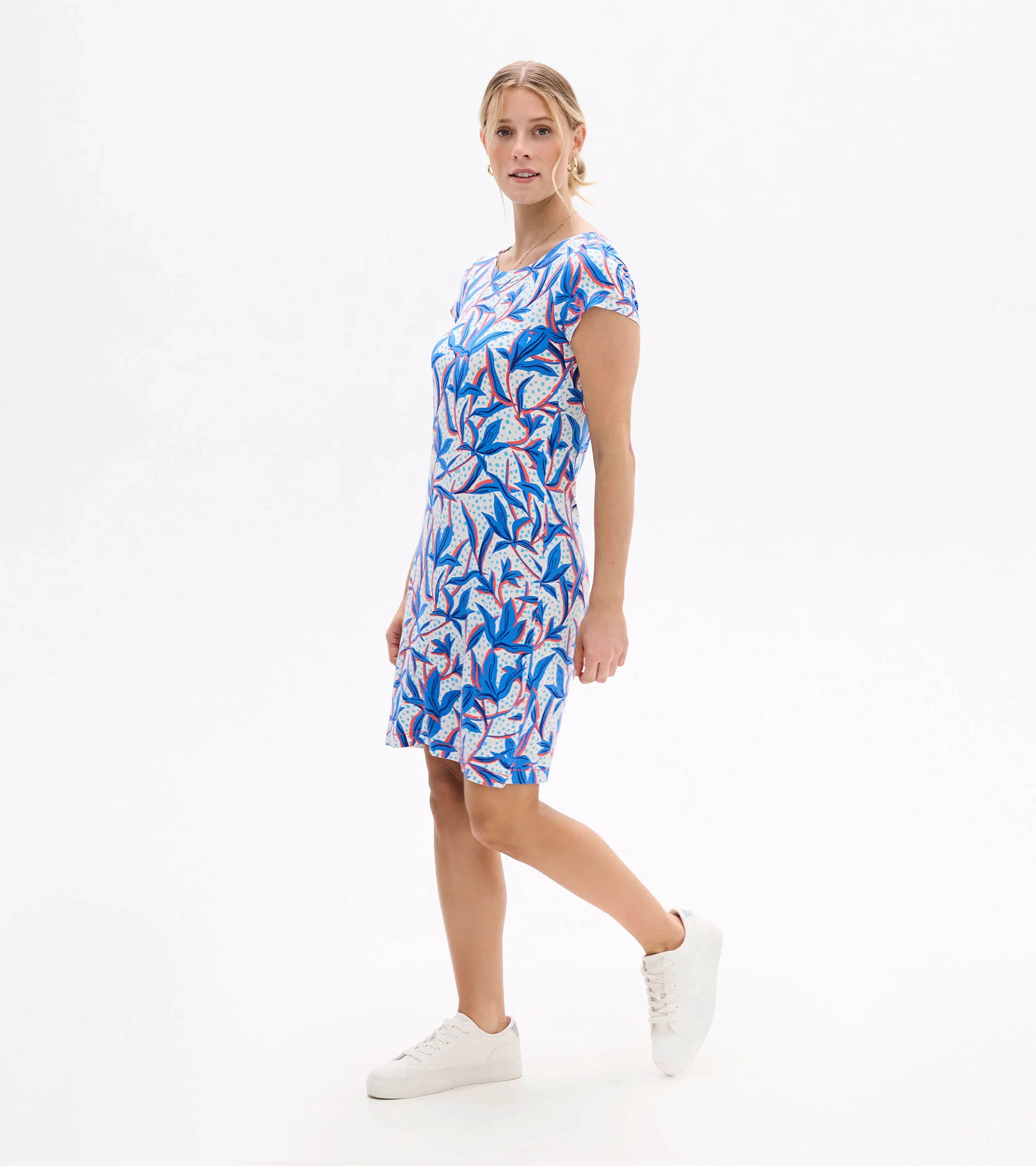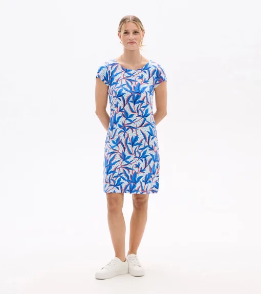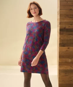 The understated Nellie dress has a superpower to flatter. How? Its strategically placed print creates the illusion of a tiny waist and its clean lines smooths your silhouette. The viscose-blend feels super-soft and has a little bit of stretch for comfort that gives this tee dress stand-out ability.