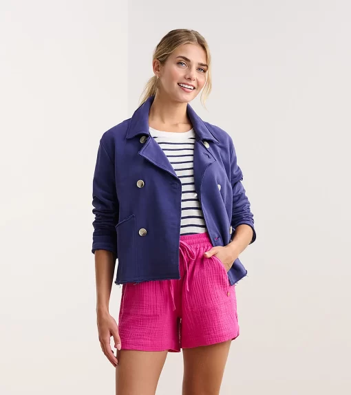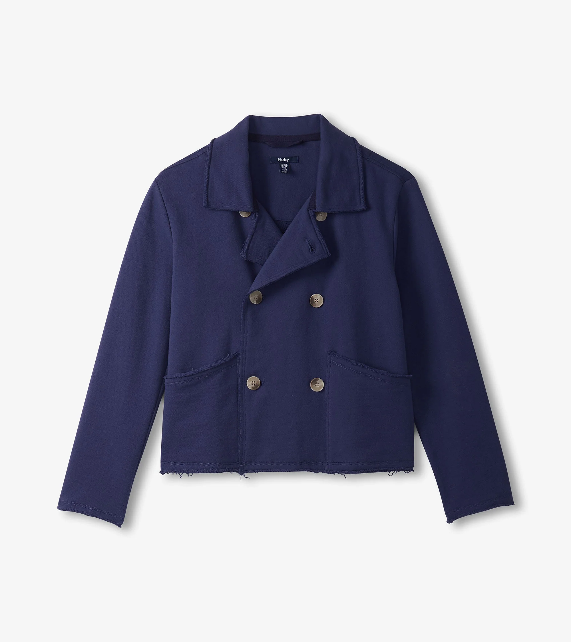 The Preppy Blazer in Patriot Blue is a sophisticated layering piece. Crafted from breathable cotton, it offers front patch pockets, trendy raw edges, and a structured fit that complements any outfit. The rich blue hue adds a polished touch, perfect for workdays or evenings out. Pair it with tailored pants or a dress for timeless appeal.