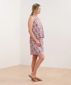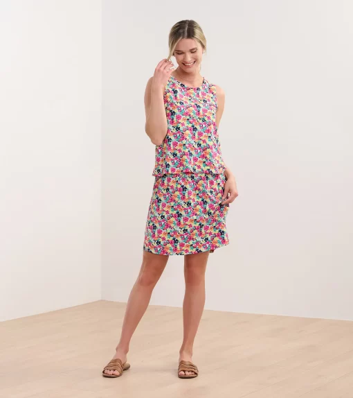 The Roberta Dress in Fresh Flowers exudes vibrant charm and timeless femininity. Made from a polyester and spandex blend, it features a flattering top-tier overlay that falls on the hips, a keyhole closure on the back with contrasting tassels, and a bold floral print. The lightweight fabric ensures all-day comfort, making it suitable for a variety of occasions. Perfect for traveling, this dress is wrinkle-resistant. Pair it with simple heels for an effortlessly chic look.