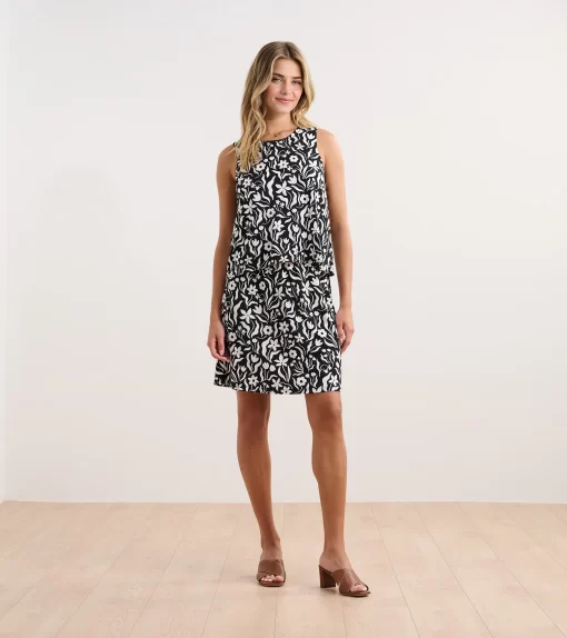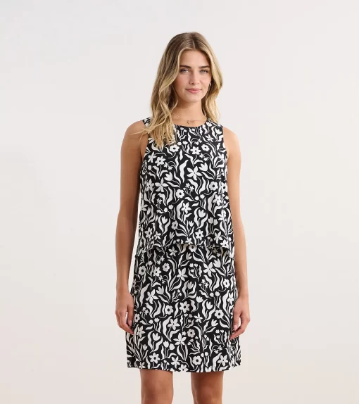 The Roberta Dress in Wavy Flowers adds a touch of artistry to your wardrobe. Made from a polyester and spandex blend, it offers a charming keyhole closure a the back with contrasting tassels, a top-tier overlay that falls around the hips, a flattering fit, and lightweight comfort. The wavy floral design brings unique, playful energy, ideal for special occasions. It is wrinkle resistant so it is also the perfect option for travelling.