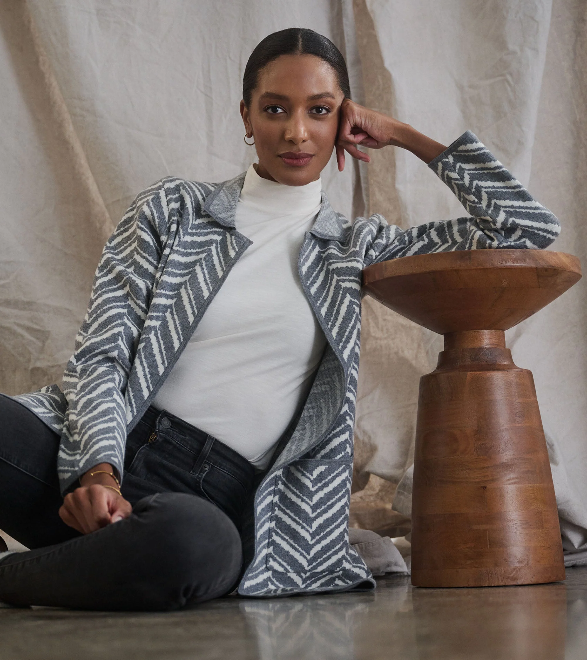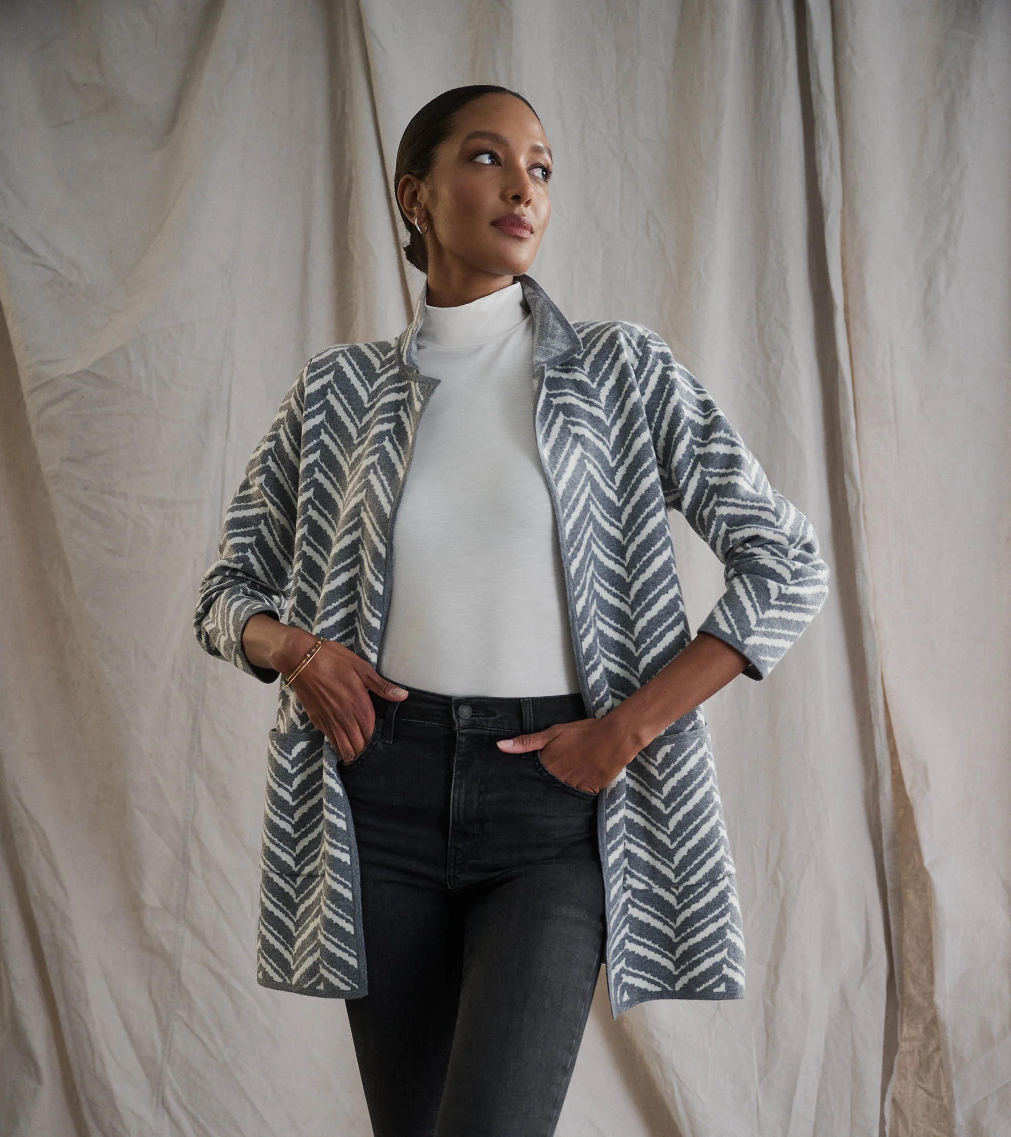 Hatley Women’s Sweater Blazer – Grey Chevron