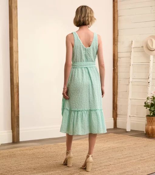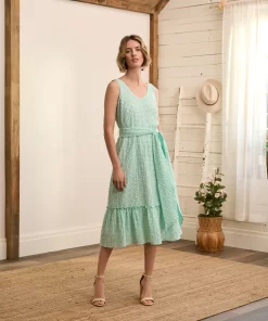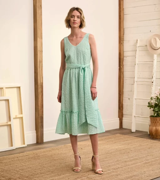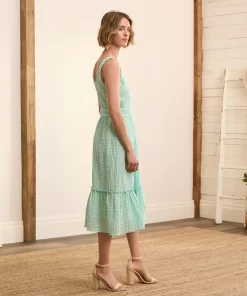 The chic Sydney midi dress features a feminine design with clean lines. The v-necked bodice has princess seams that flatter while the tiered skirt flares out a little. The natural cotton-linen blend is both cool and long-lasting – a most perfect summer dress.